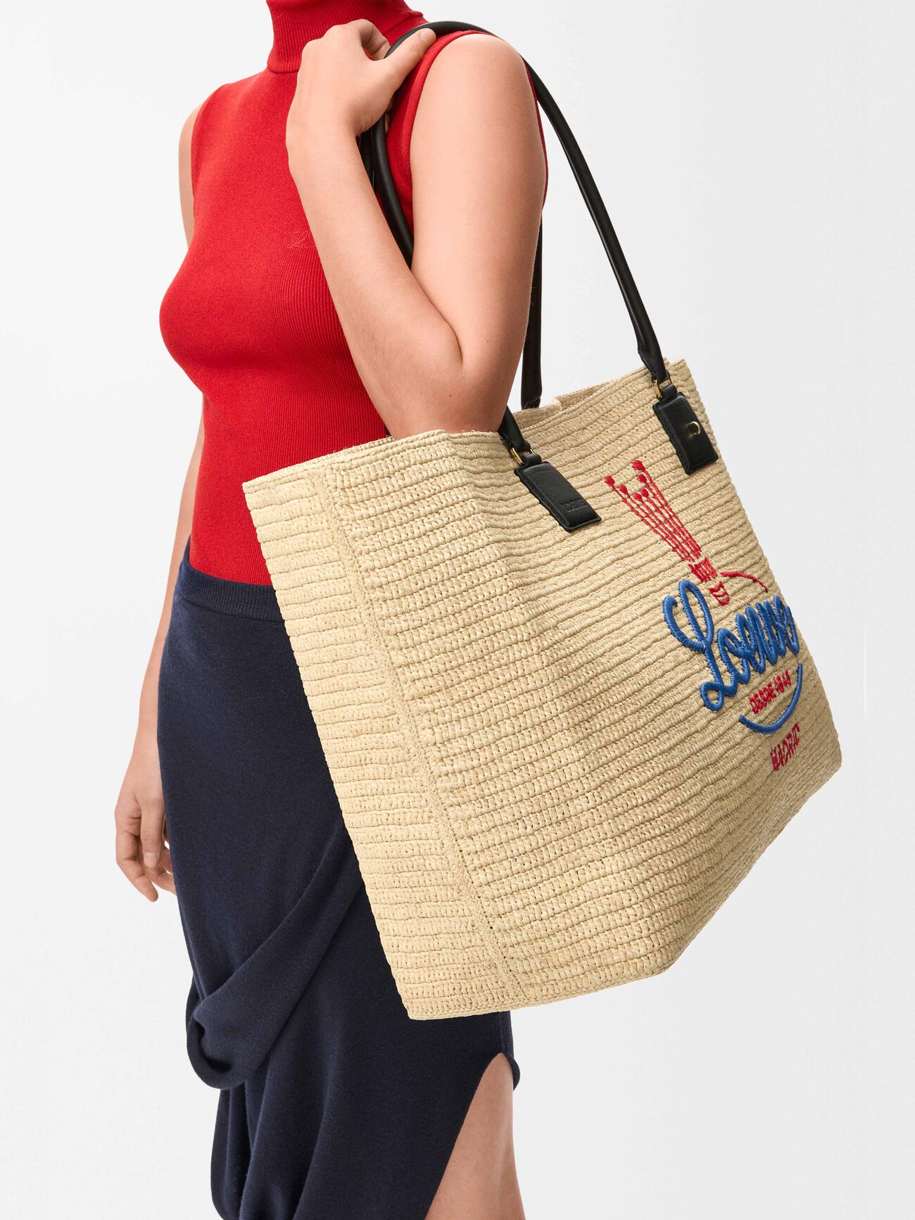 大号伊拉卡棕榈纤维和牛皮革 Anagram Basket 手袋